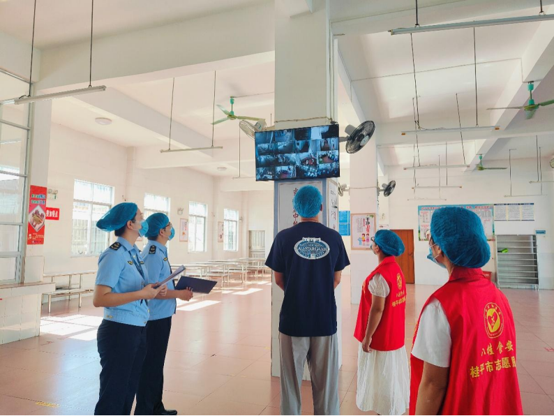取此同时,由桂平市市场监管局法律人员、“八桂食安”意愿办事者构成的“突击”查抄组,正在校方下一同走进学校食堂内部开展“随机查餐厅”勾当,同查共检当日校园餐平安环境。